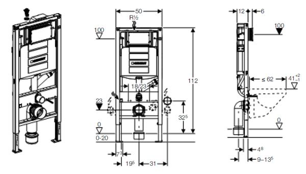 Монтажная рама Geberit Duofix UP320 Функция удаления запаха 111.370.00.5
