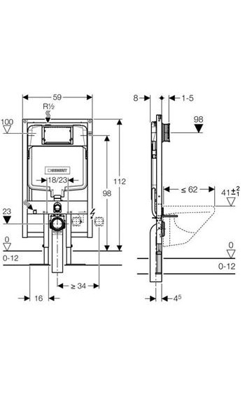 - Крепление М12 для подвесных унитазов, крепежное расстояние 18 см или 23 см
