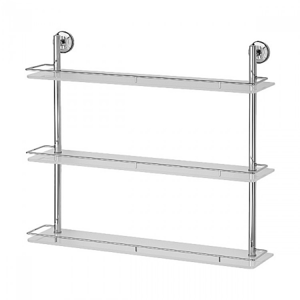 В современных ванных комнатах хранится множество предметов личной гигиены, средств уборки и т.п. Двухуровневые стеклянные полки позволяют разместить значительное количество этих предметов. Преимущество полок заключается в том, что они имеют всего два крепления к стене, которые удерживают массивную конструкцию. Таким образом, сверление в стенах сведено к минимуму.