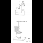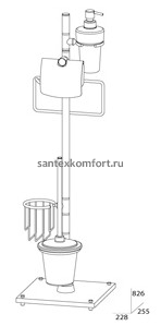 Коллекция включает в себя пять видов напольных стоек различной комплектации. Высота штанги напольных стоек составляет 80 см. Основание стоек укомплектовано четырьмя металлическими опорами и выполнено из качественного матированного белого стекла толщиной 12 мм. Преимущества напольных стоек заключаются в том, что соблюдается компактность расположения и экономия пространства в ванной или туалетной комнатах и отсутствует необходимость сверления стен. При необходимости местоположение стойки легко можно поменять.