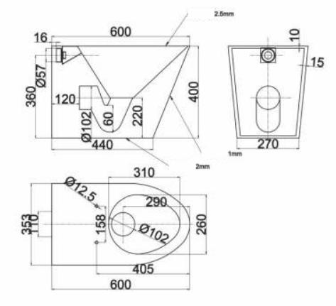 Унитаз напольный. Сталь нержавеющая 304 AISI, толщина 1,2 мм., поверхность матовая.