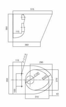 Унитаз подвесной. Сталь нержавеющая 304 AISI, толщина 1,2 мм., поверхность матовая.